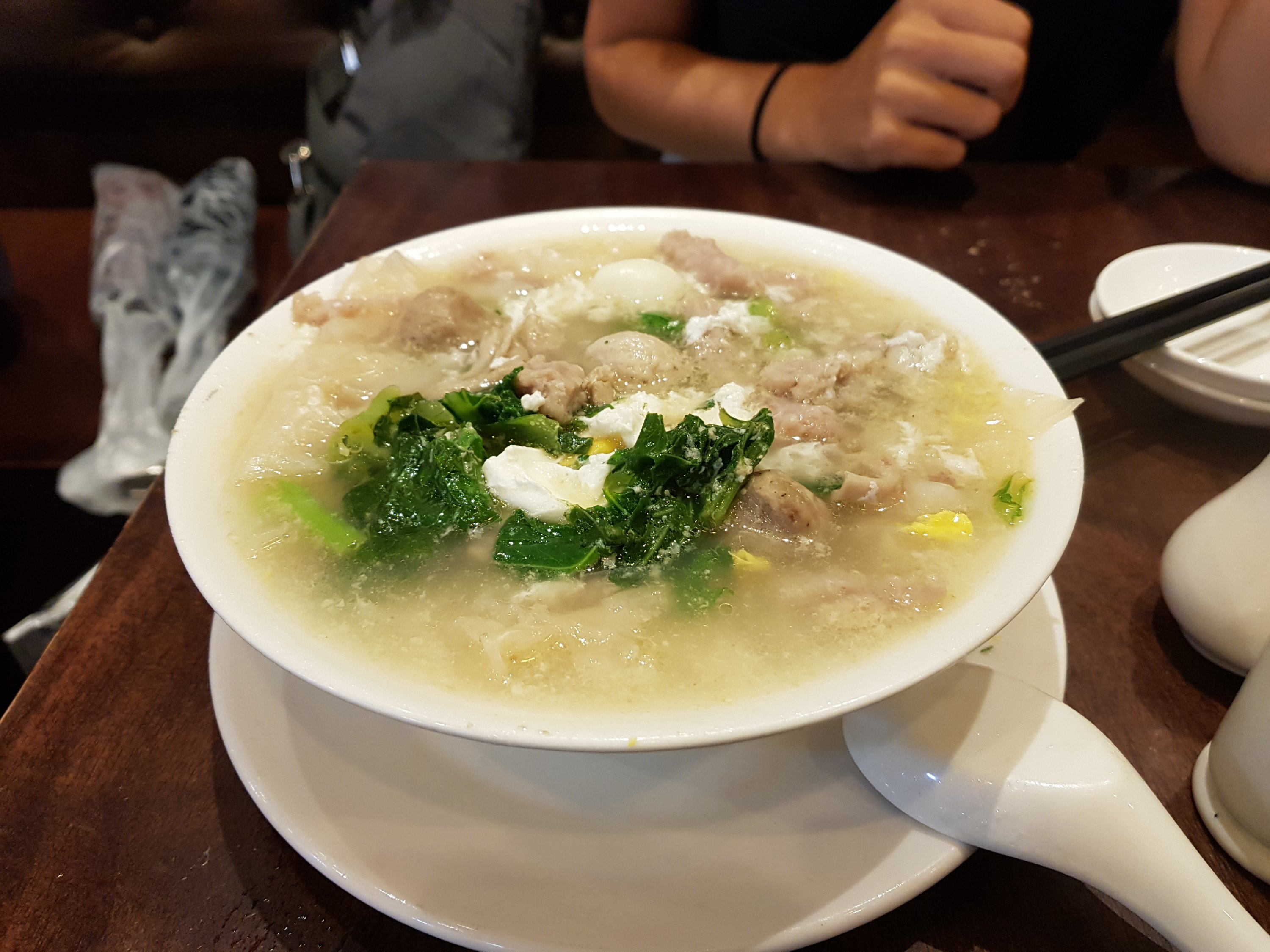 It’s a soup noodle dish that is traditionally comprised of pork, pork meatballs, pork brains and pork intestines.
