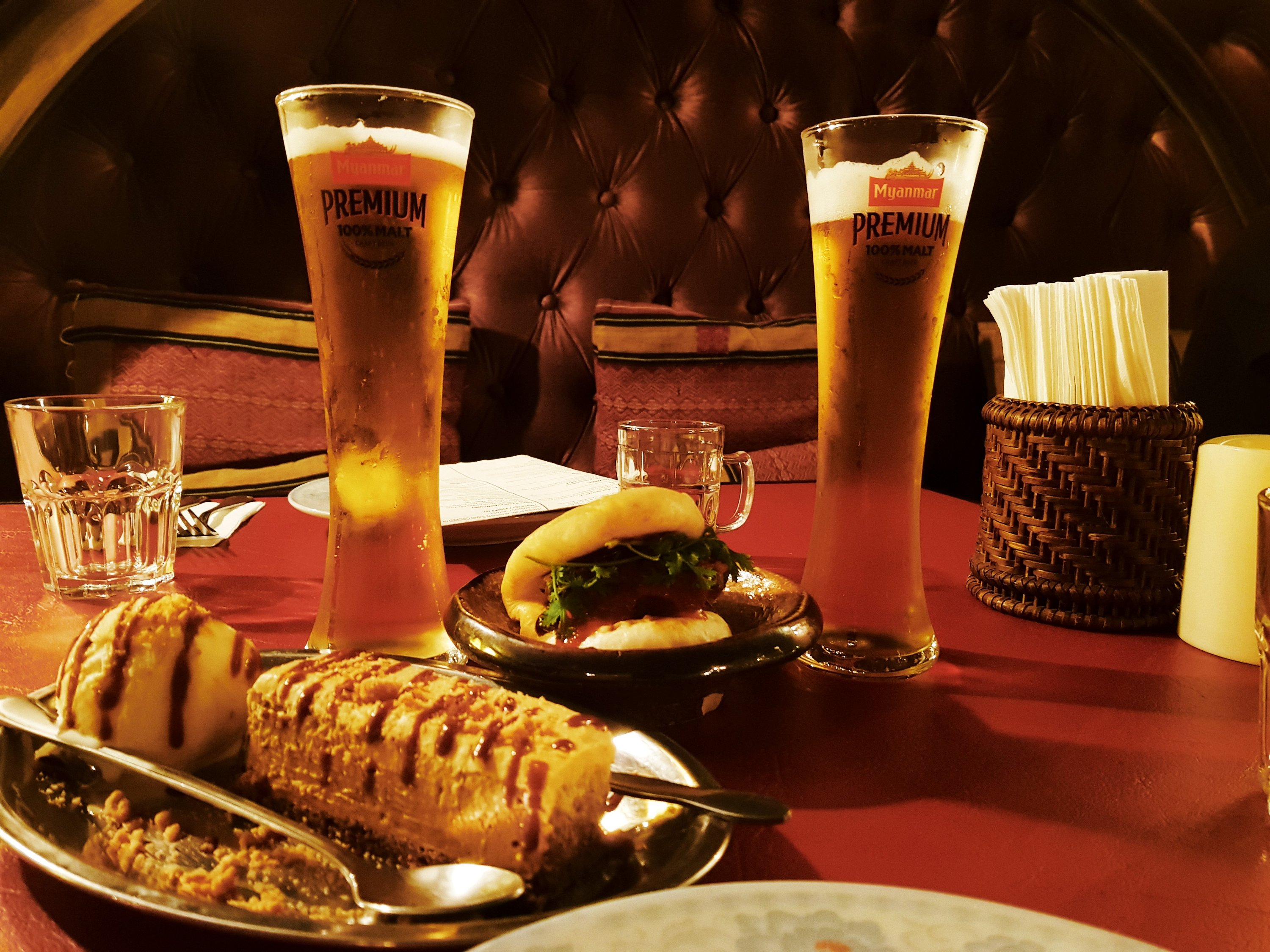 Afterwards, we stopped into one of the many adorable restaurants in the area called Rangoon Tea House. This place was amazing. Cute coffee house/restaurant downstairs, classic bar/restaurant upstairs. All styled in a colonial time design. We sat upstairs and enjoyed some chai cheesecake, pork steamed buns and an ice cold beer.