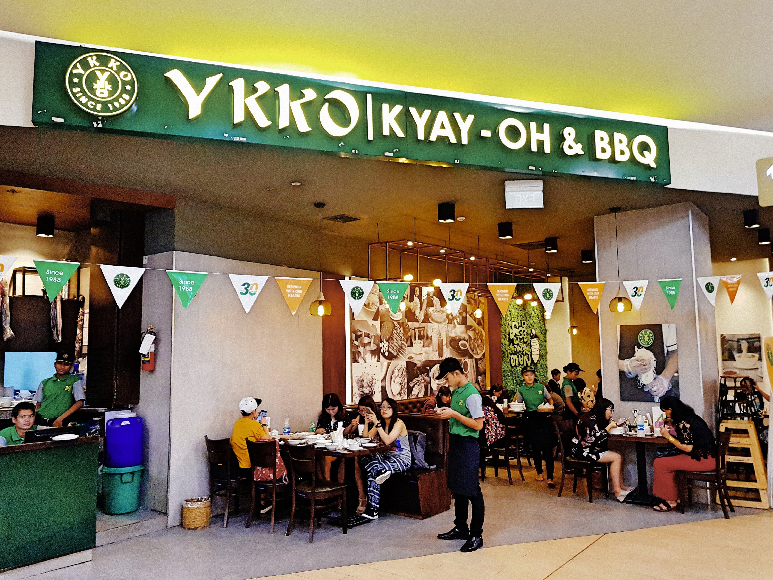 We trekked out for some lunch. We had a basic idea of which direction we were headed. This was made a bit more uncomfortable since we were in the midst of a downpour. We actually ended up at the high end mall, Junction City. We went to the restaurant floor and found a place that was jam packed with locals ‘YKKO’. This turned out to be a pretty famous chain in Myanmar and they specialized in one dish ‘Kyay Oh’. We ordered one ‘wet’ with wonton noodles and pork and one ‘dry’ with chicken and rice noodles. We dressed them up with fresh chili and garlic and took our first bite.