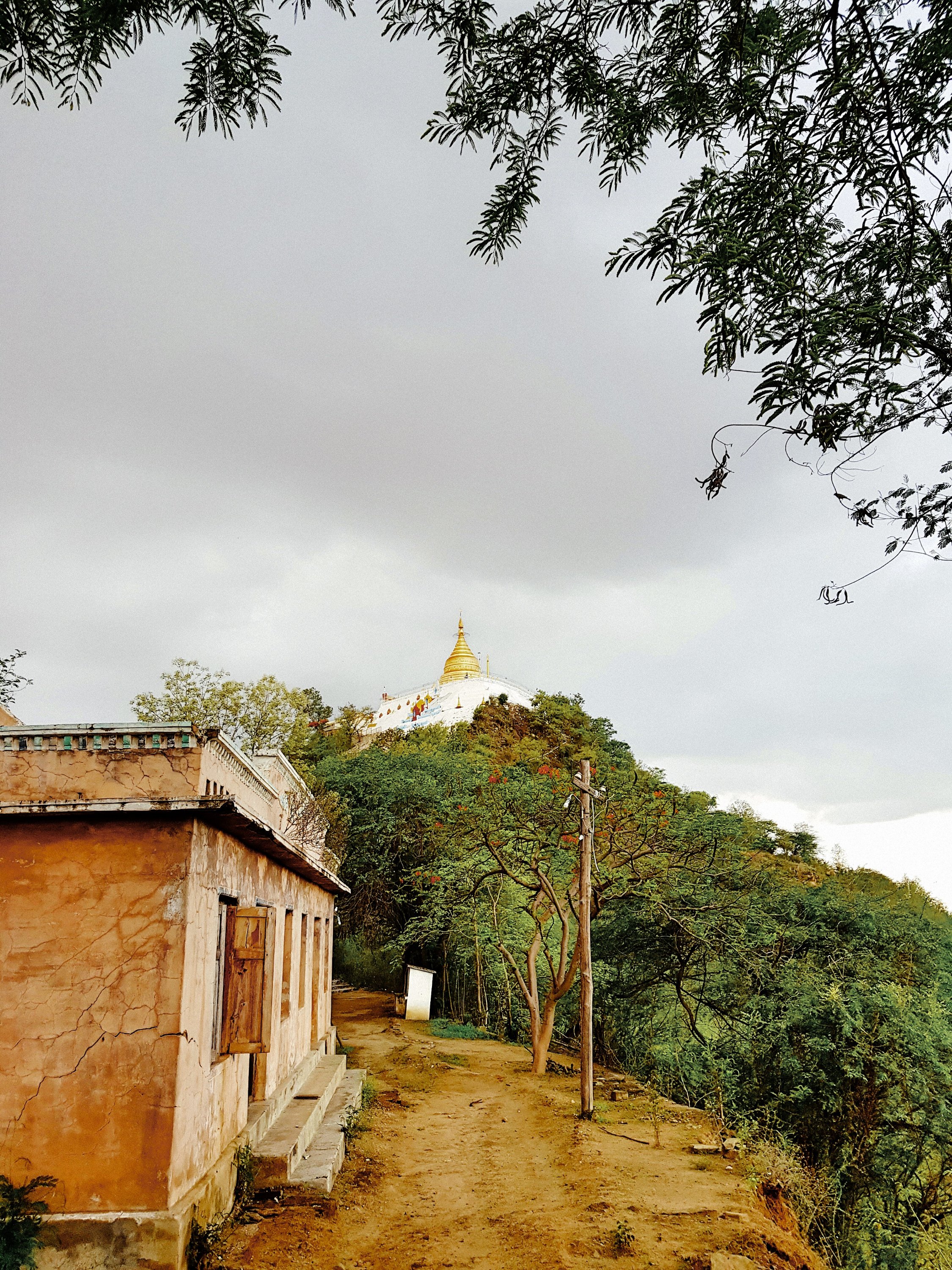The next day, we woke up and jumped on the E-bike and headed towards the temples making sure to avoid the checkpoint again. We spent the entire morning bouncing between temples. They were all fascinating. We could clearly see evidence of the attention to detail that used to exist on the exterior of these amazing structures. After getting in our fill of temples, we grabbed lunch in town and headed back to our hotel. We decided to hike up to a golden temple at the top of a nearby hill to watch the sunset but unfortunately it was too cloudy that evening to see any sunset. We did get magnificent views of Bagan and Mt. Popa, an extinct volcano.