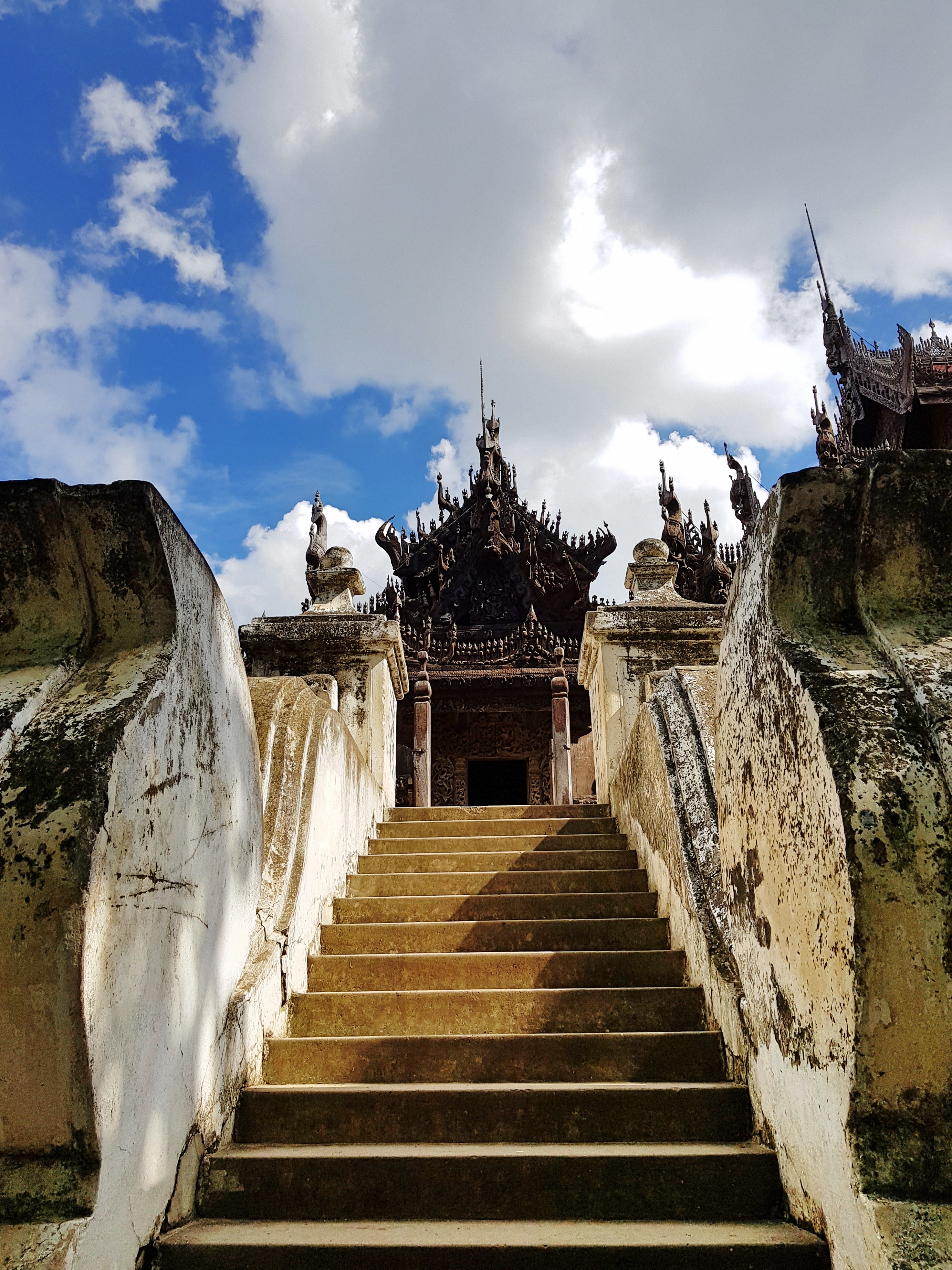 On our fourth and final day in Mandalay, we had to be out of our room at noon. We returned our motorbike and decided to have a cultural day. We explored Shwenandaw Monastery, Sanda Muni Pagoda and Kuthodaw Pagoda.