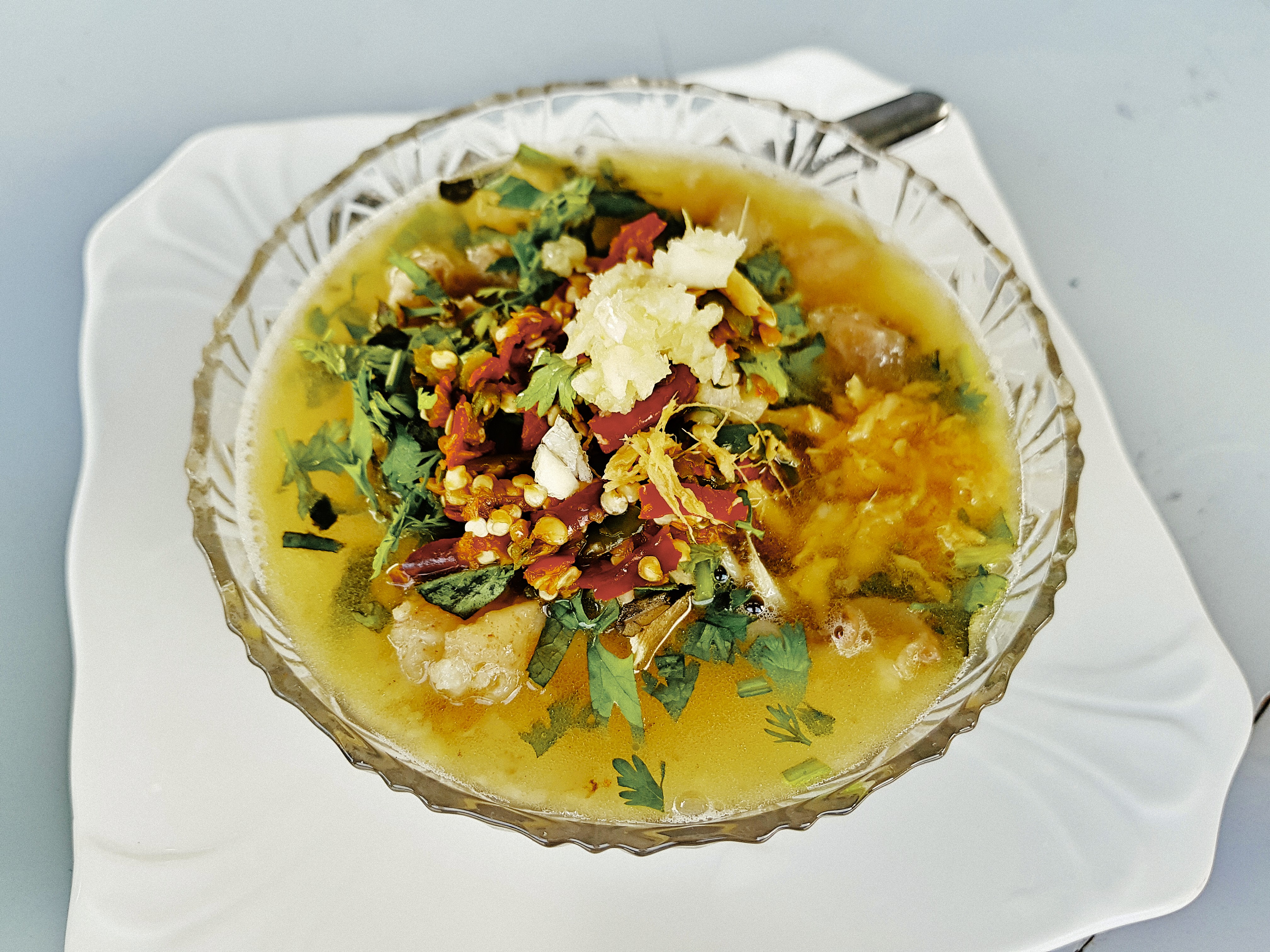 She soon brought over a couple bowls of soup. We tasted ginger, lemongrass, chili, garlic, cilantro, intestines, kidney, liver and chunks of unidentifiable beef.
