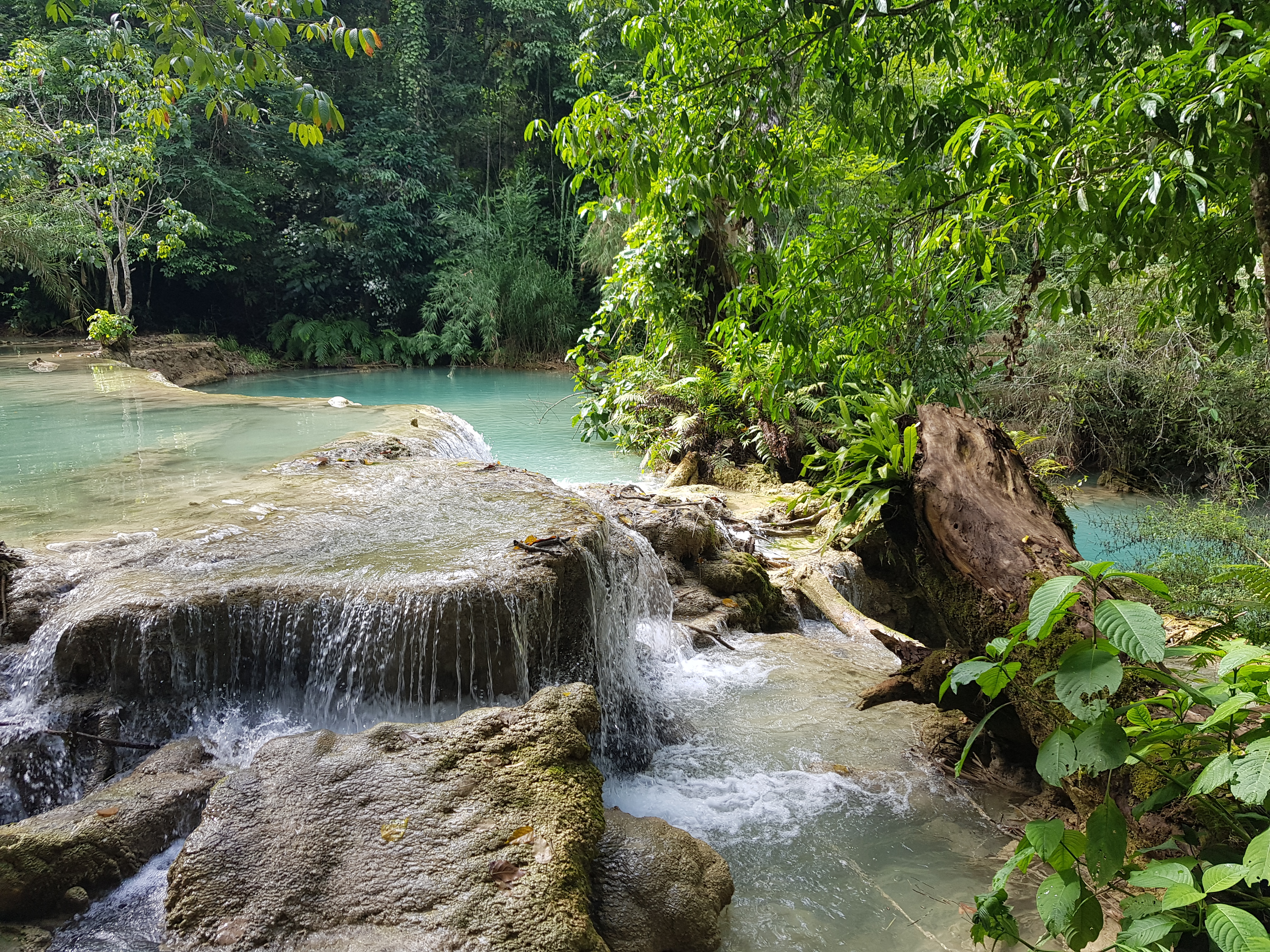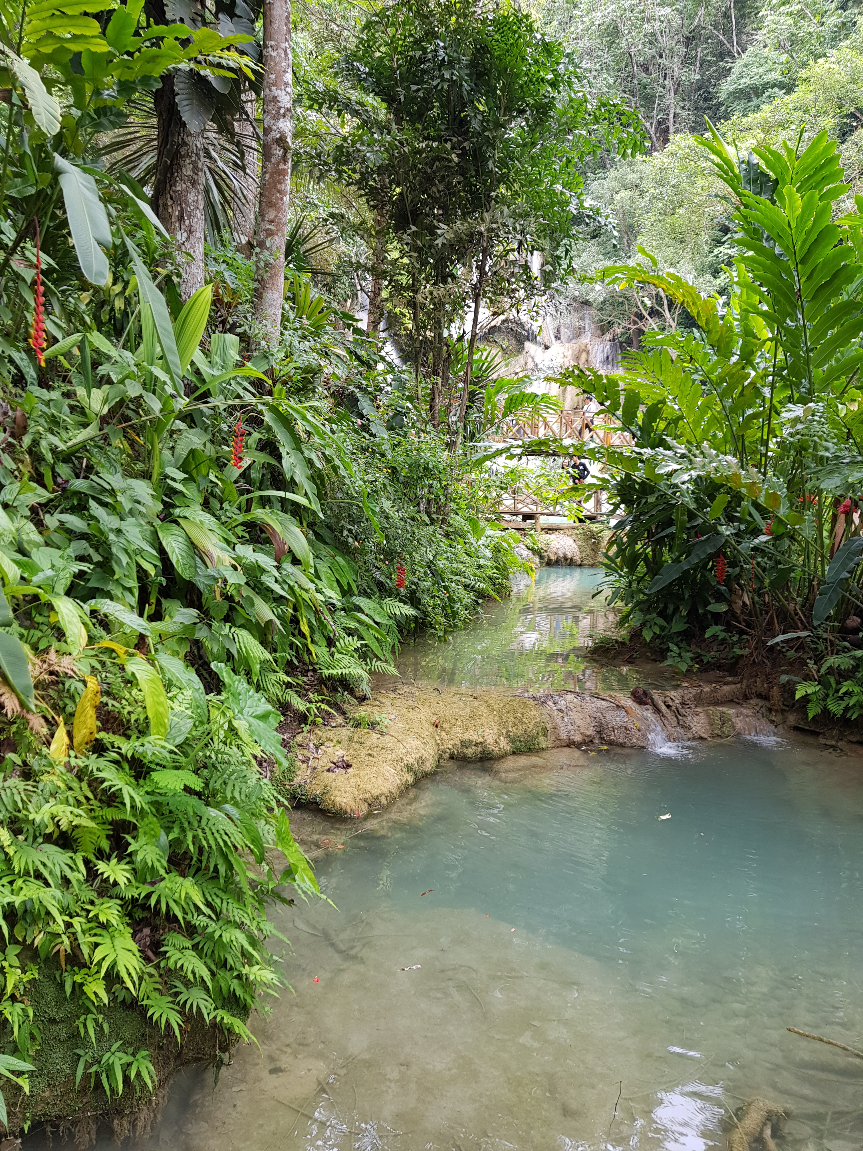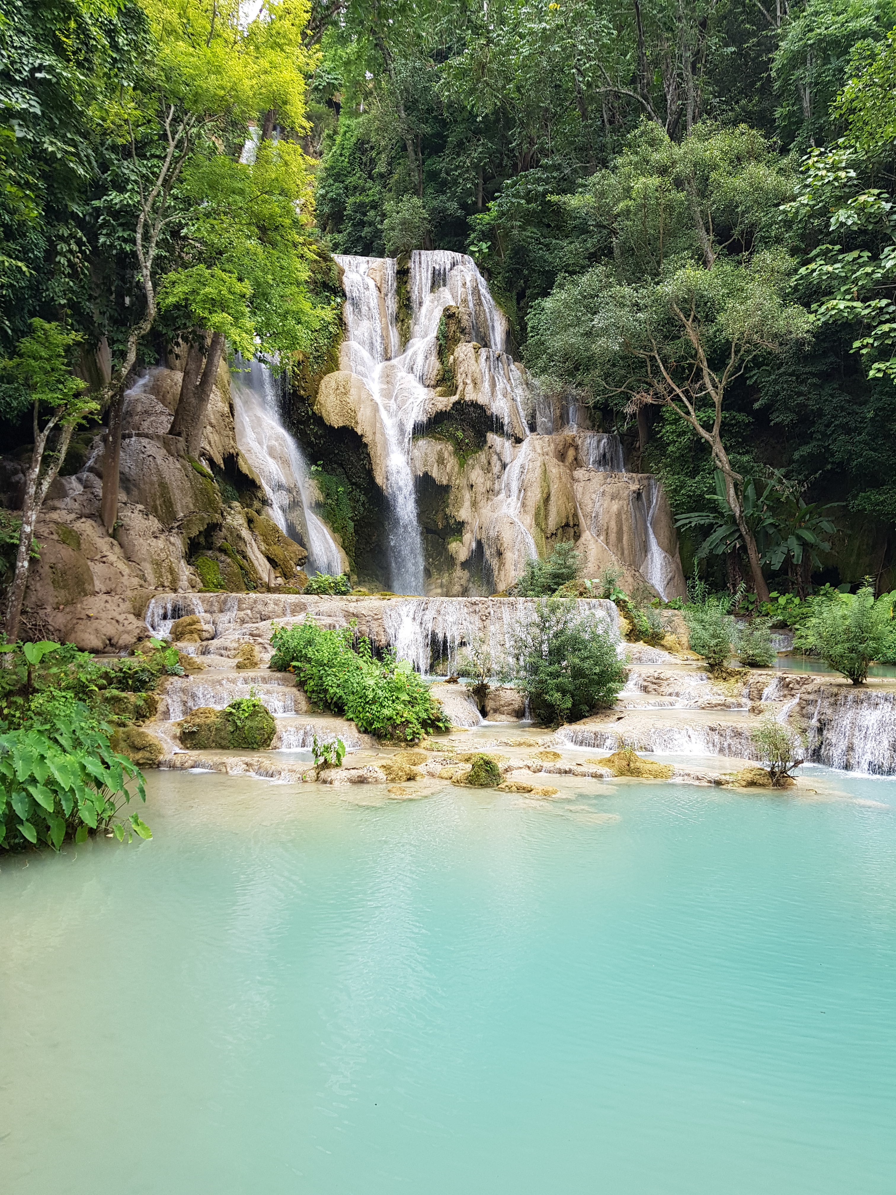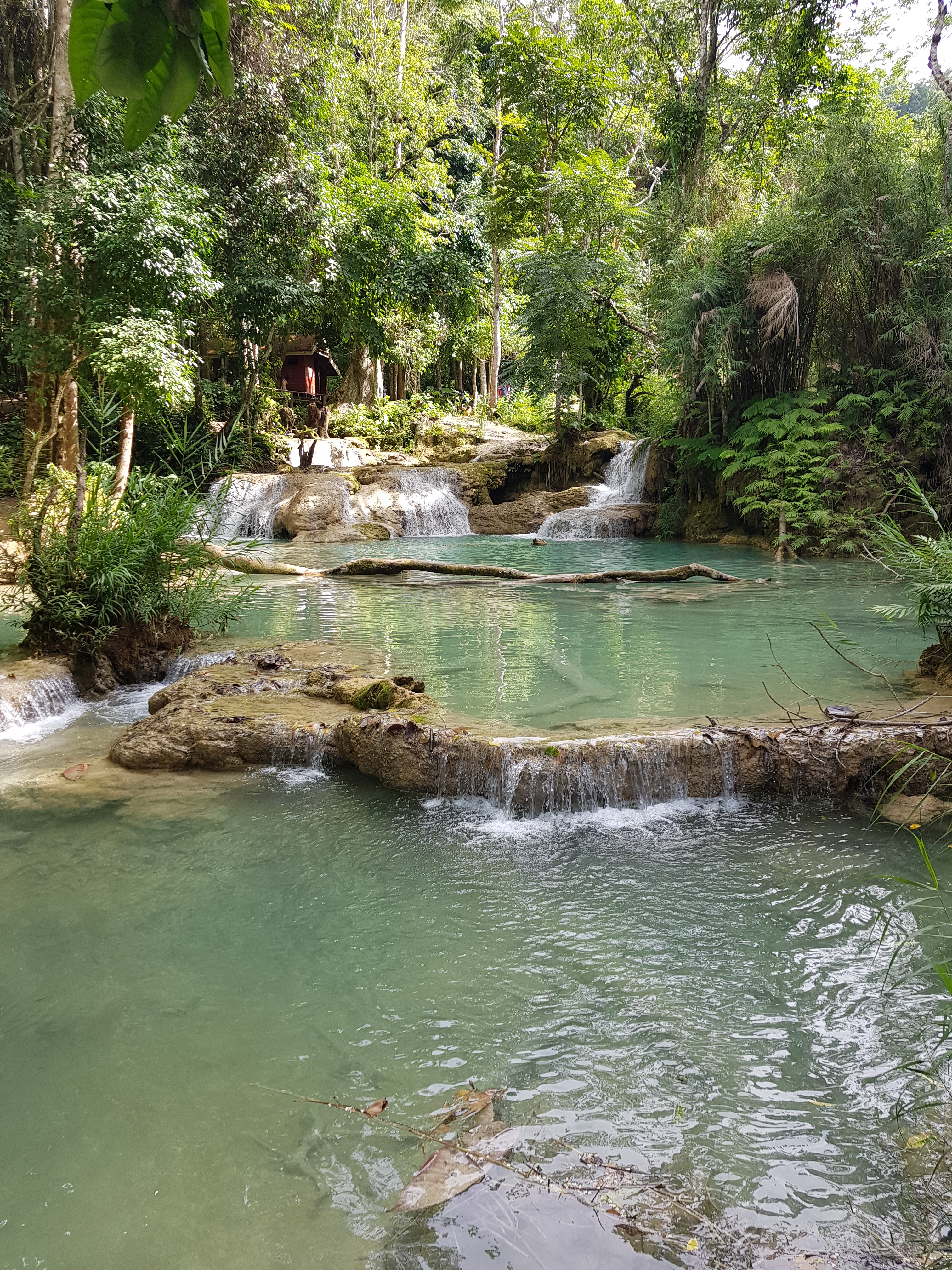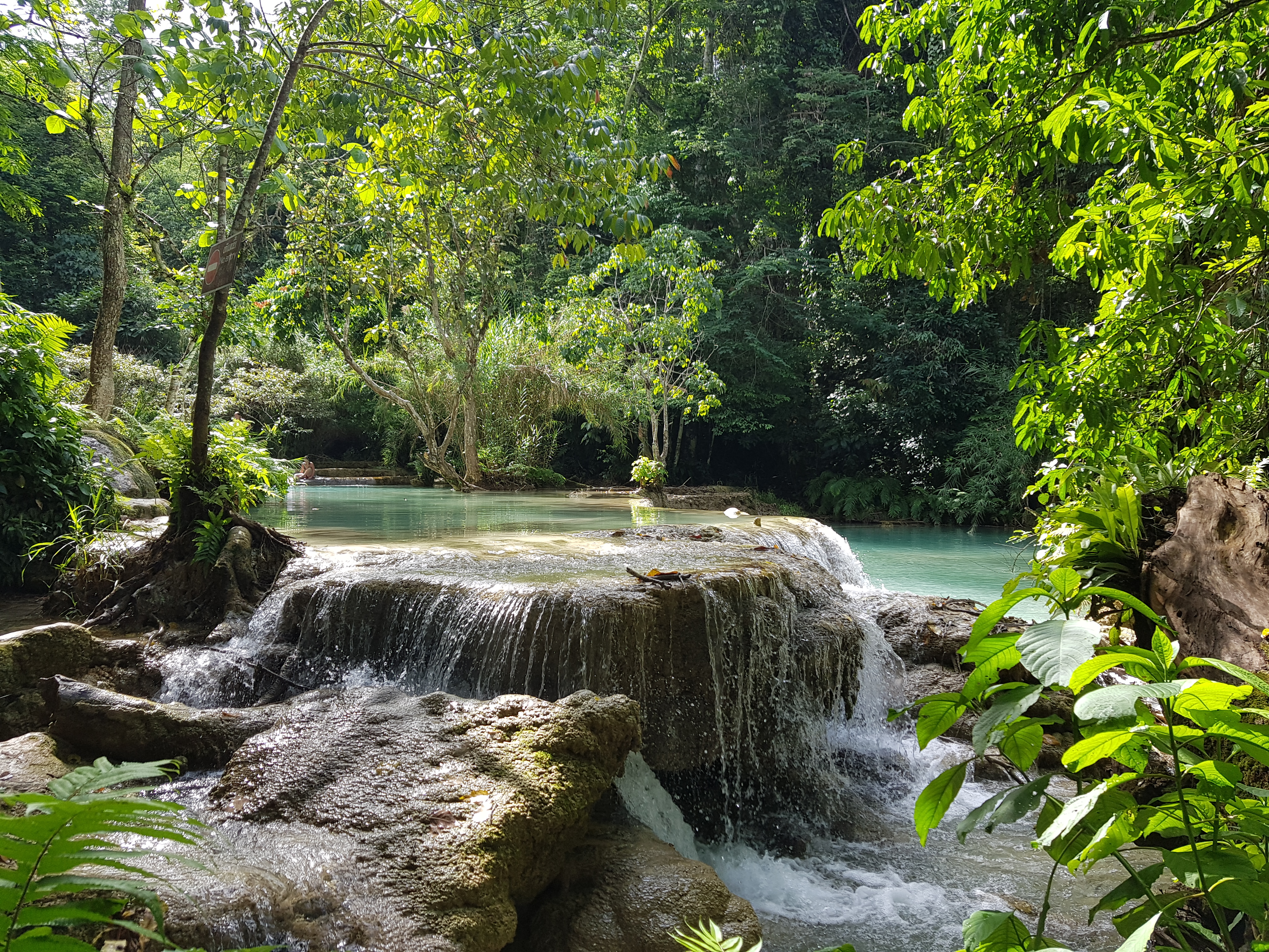The next day, which was also our last full day in Luang Prabang, was spent trekking out to Kuang Si Waterfalls. We rented a scooter for the high price of 100,000Kip and caravanned out with our new friends. We made a pit stop for lunch and coffee and carried on to the falls.