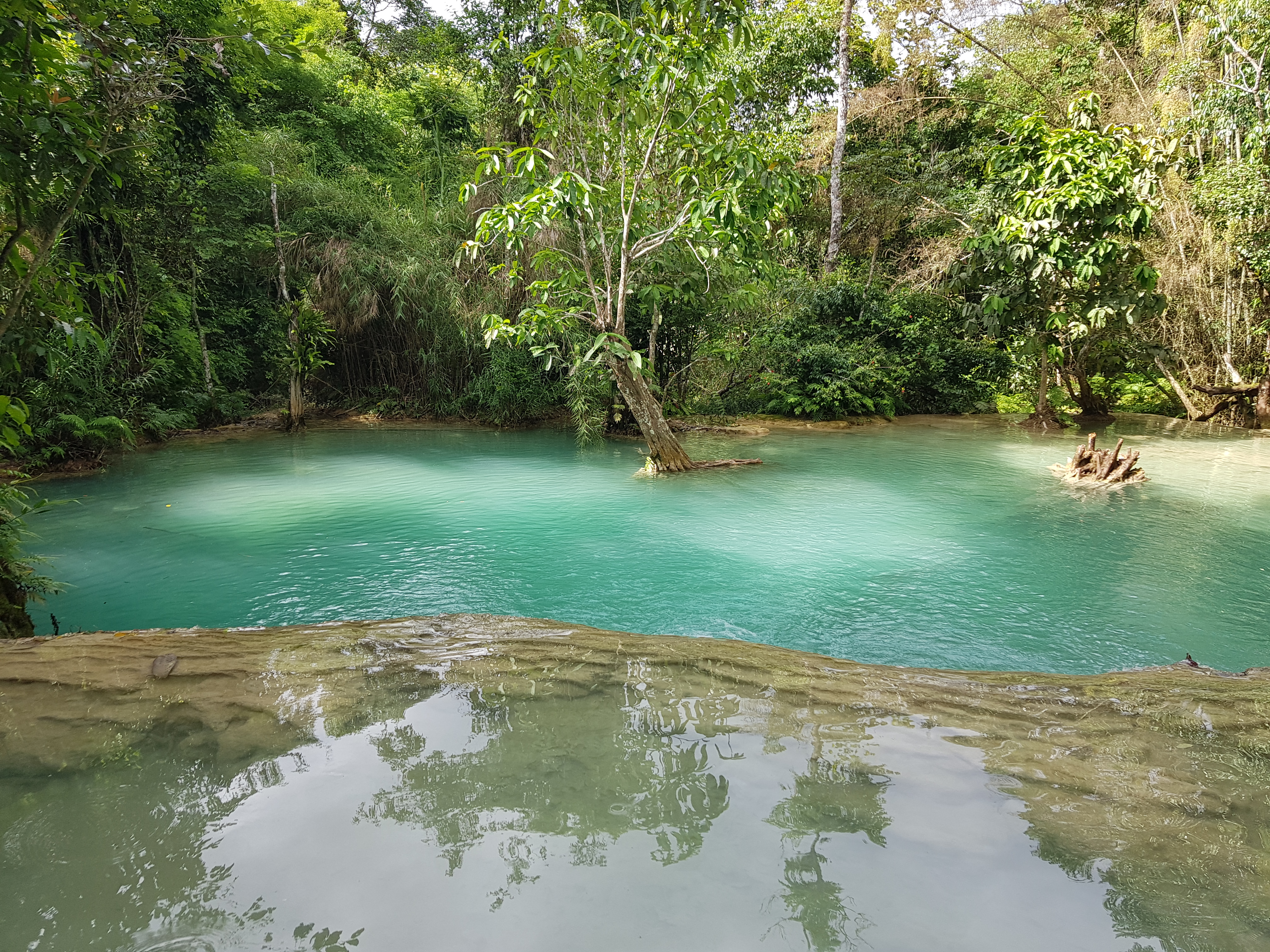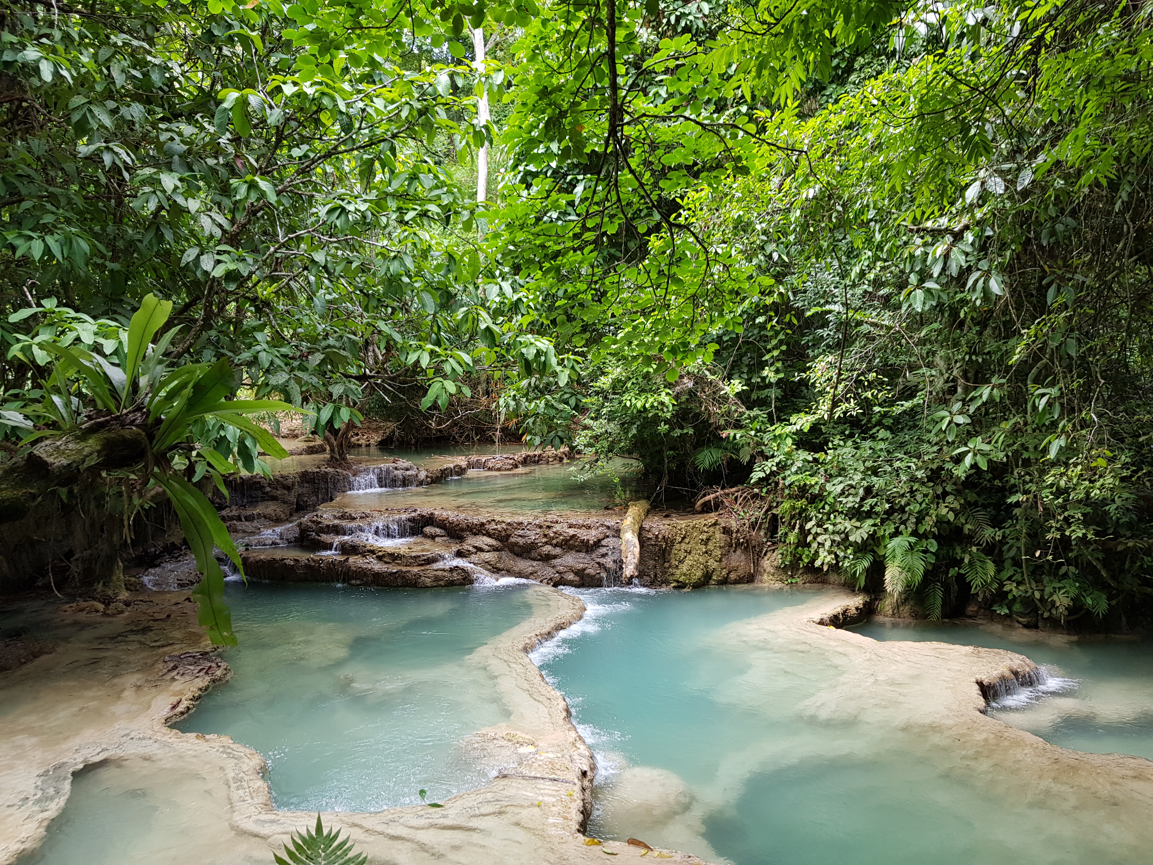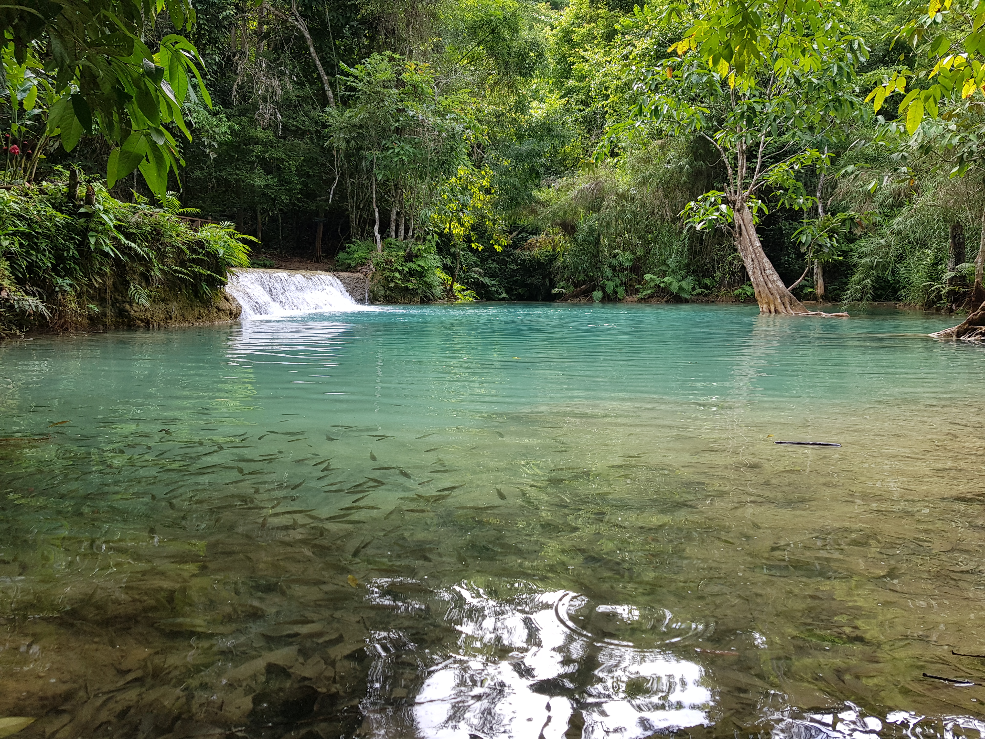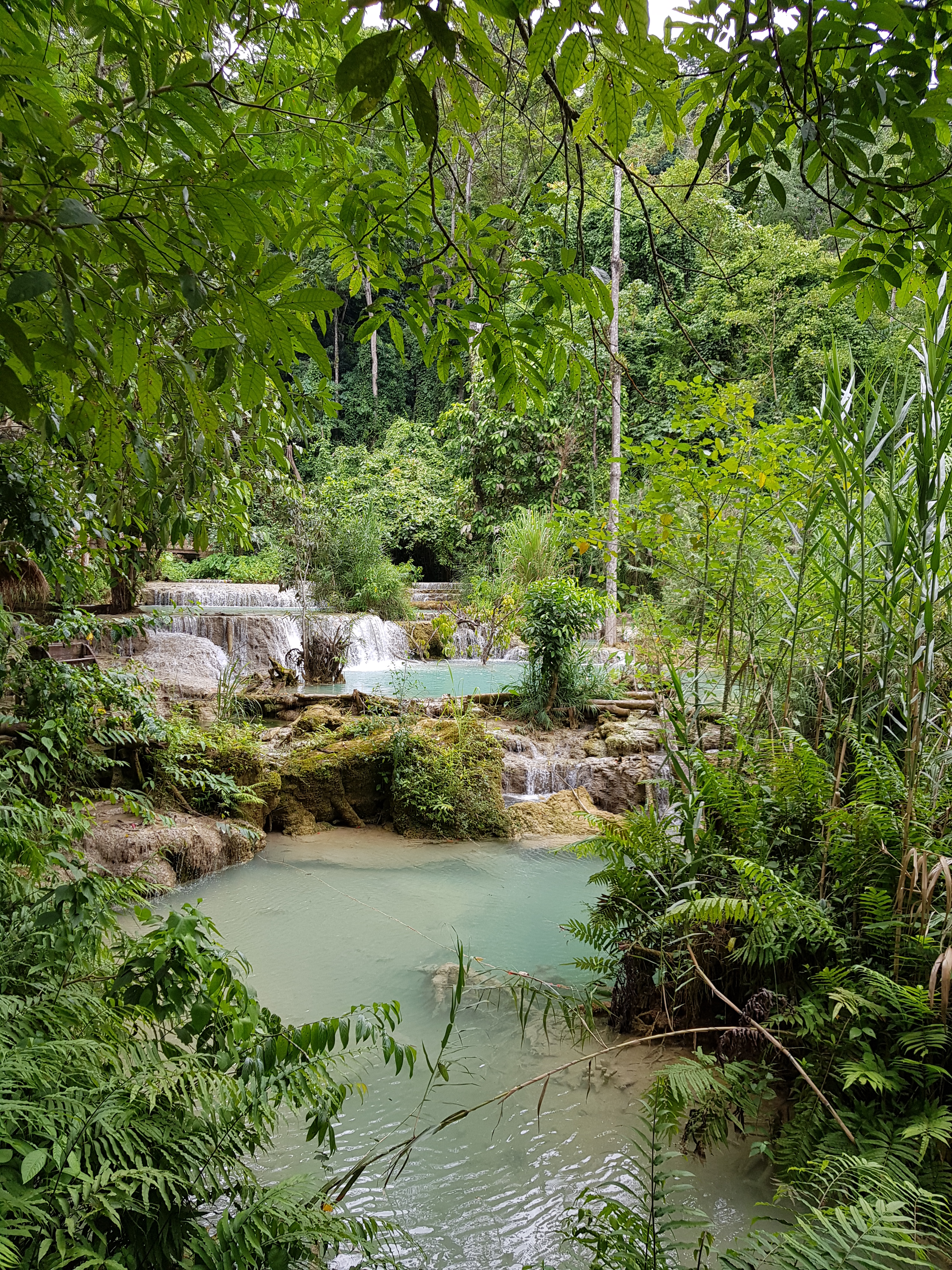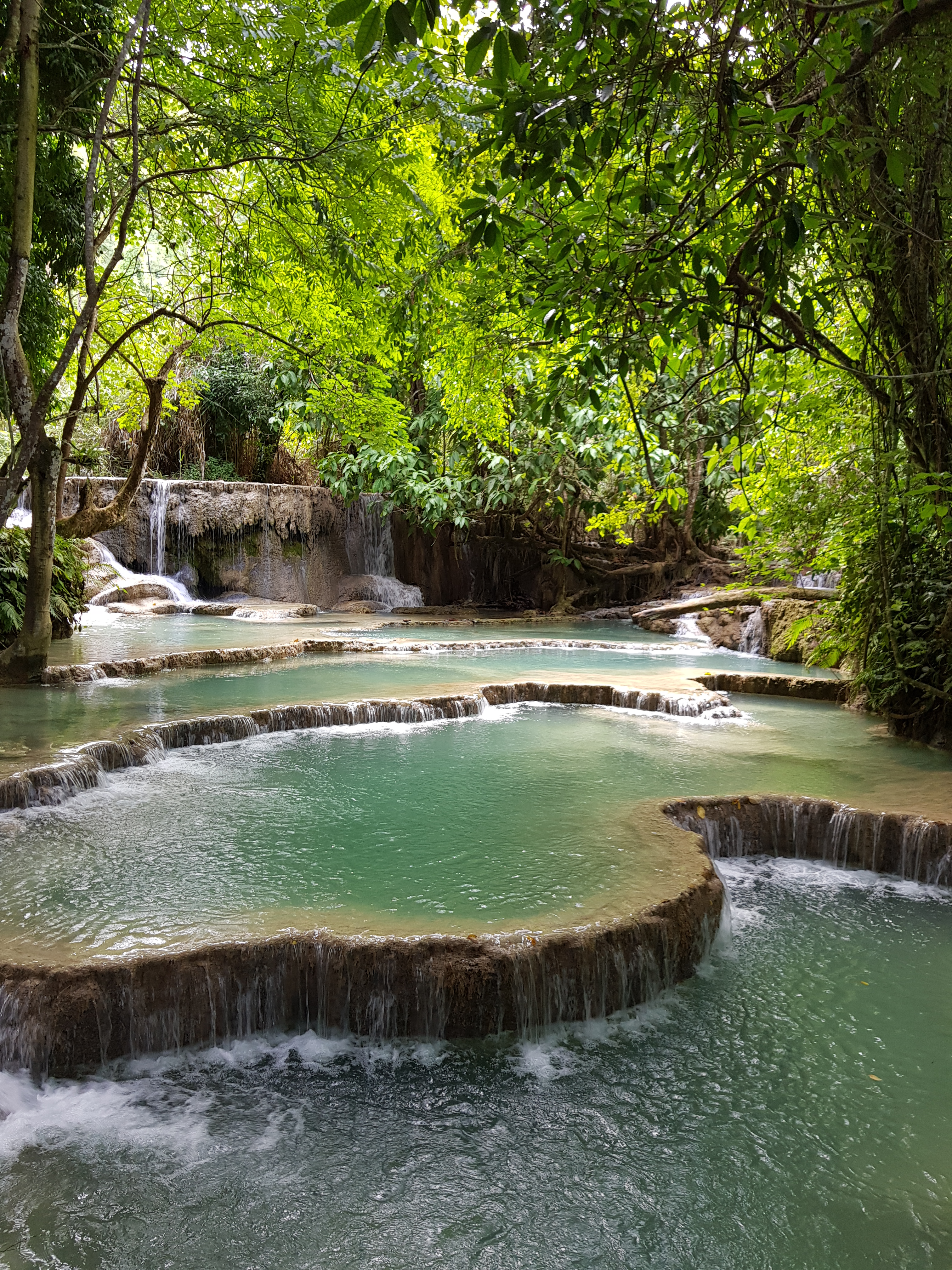 The next day, which was also our last full day in Luang Prabang, was spent trekking out to Kuang Si Waterfalls. We rented a scooter for the high price of 100,000Kip and caravanned out with our new friends. We made a pit stop for lunch and coffee and carried on to the falls.