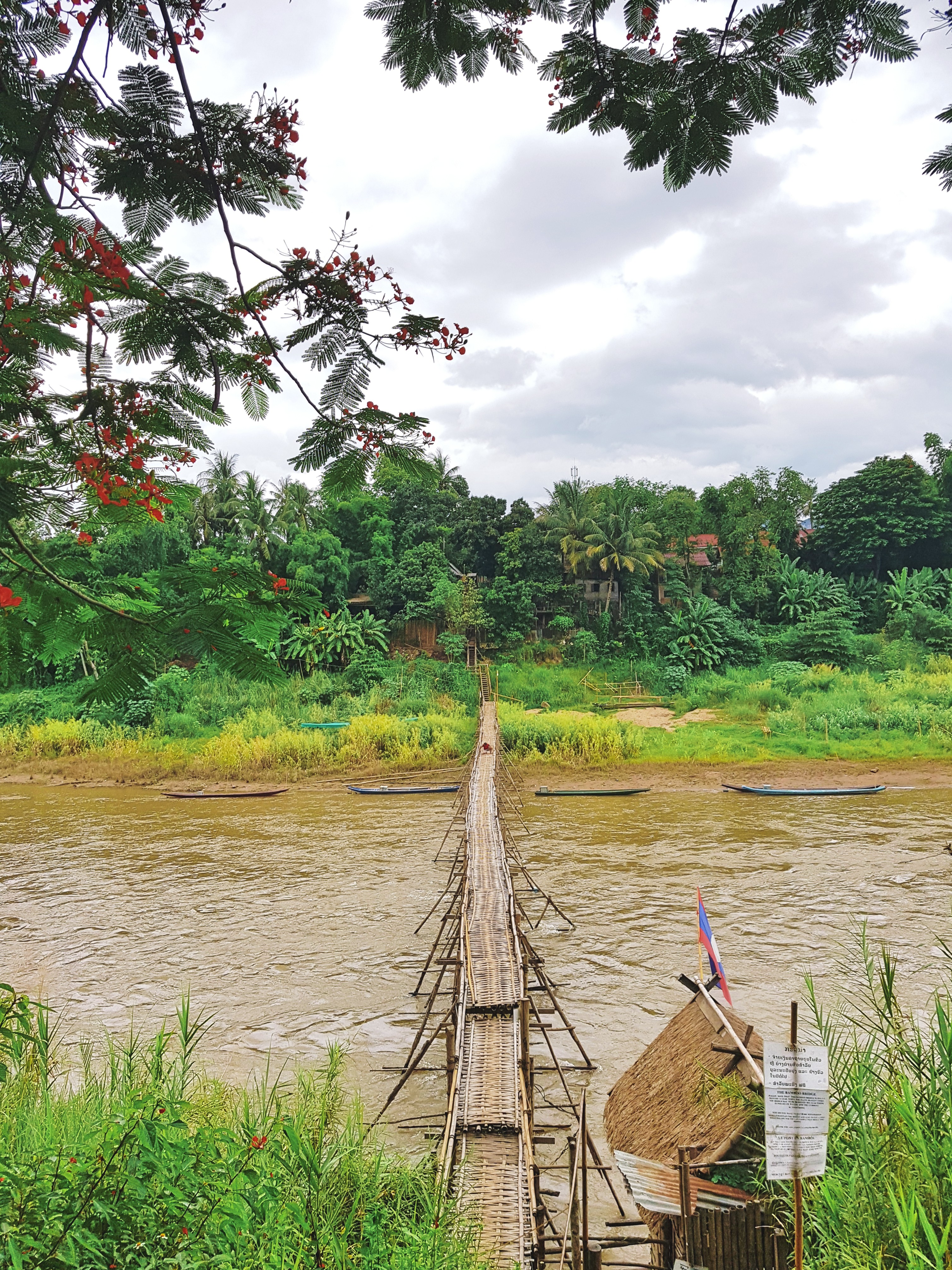 We shared a taxi with our new travel companions into town. We stayed at Villa Ban Phanluang. It had a nice French charm to it. Cute wooden rooms, comfortable bed, bathtub and nice breakfast. We paid 21USD per night. The only downside was that it is located on the other side of the river. Which requires you to cross the bamboo bridge. The bamboo bridge has a fee of 5,000Kip per round trip. Which got a bit annoying.