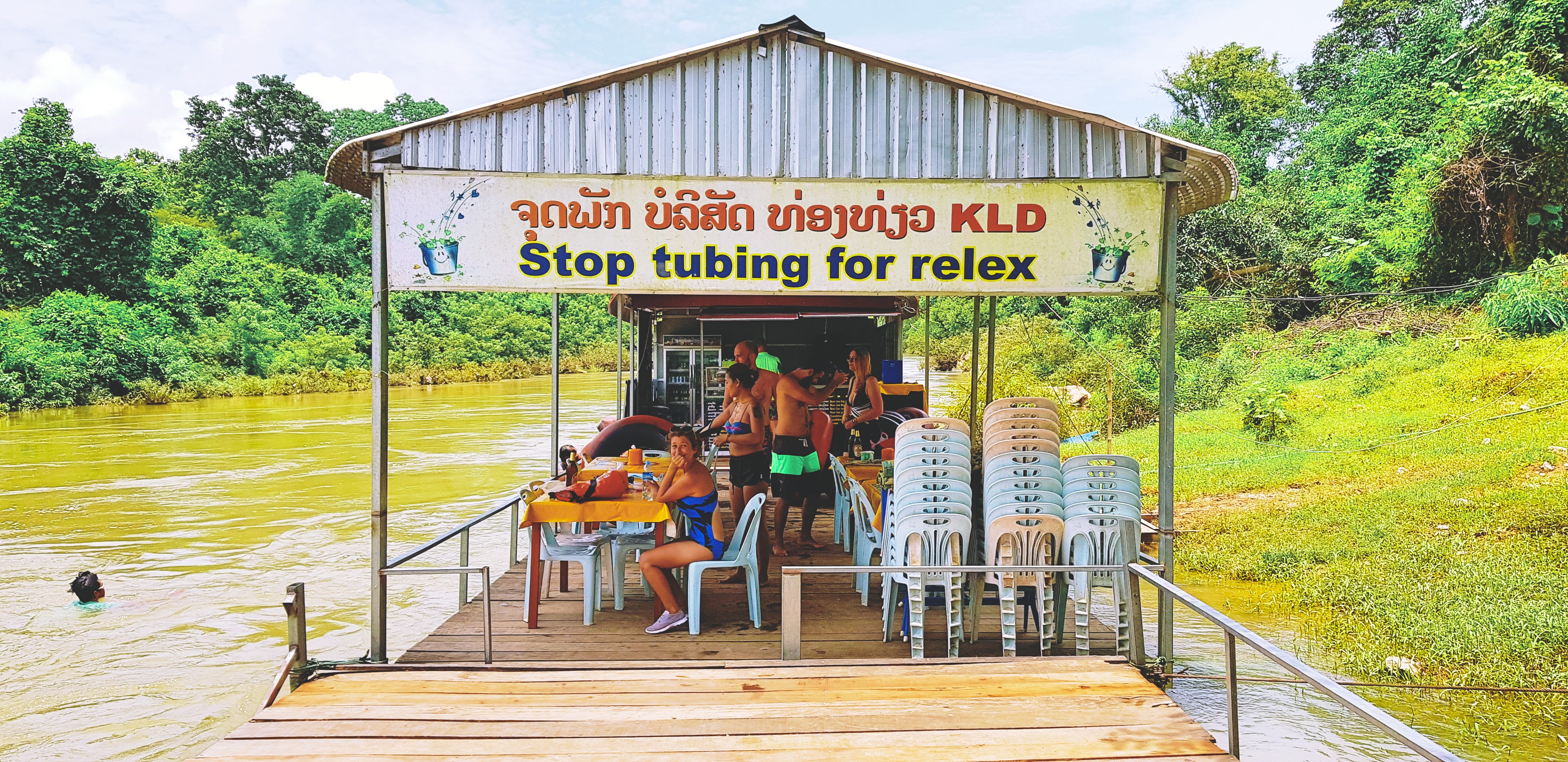 🏞Tip: Don’t go through the tubing company that uses the RED tubes. They are a scam! The legit company uses WHITE / YELLOW tubes. They will take you north of the city and your final bar, at the end of the tubing, will be in Vang Vieng. They will tell you to carry your tubes back to the shop once you are finished.